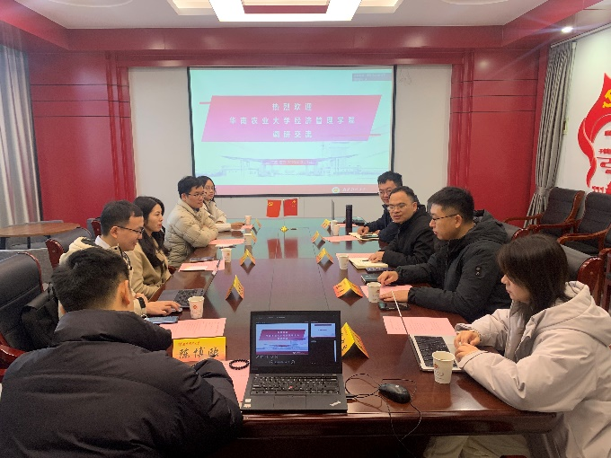 的热情接待表示感谢,并介绍了华南农业大学经济管理学院的发展历史和基本情况。针对学科建设、课程设置、招生规模、就业方向等具体问题进行了详尽的交流。