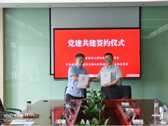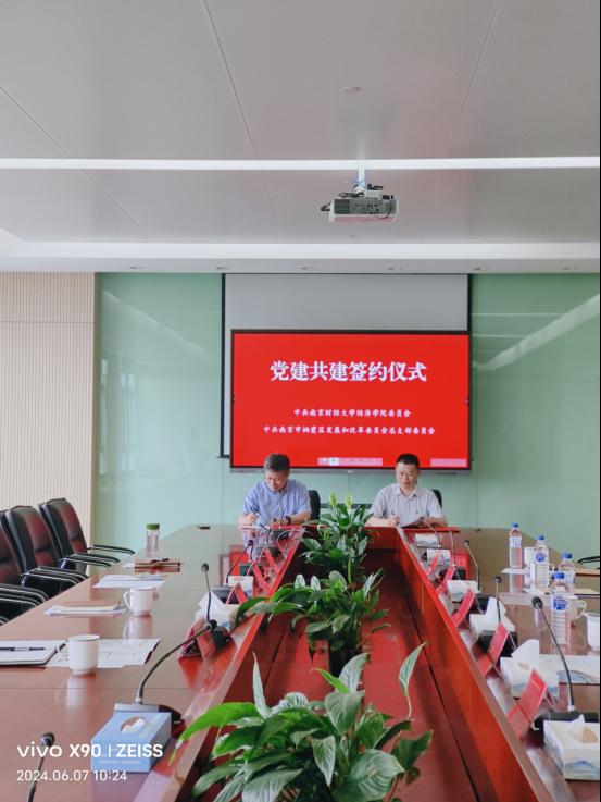 党委委员、经济系教工党支部书记杨泳冰、统计系主任程恭品、经济系主任陈博欧参加签约仪式。此次党建共建协议成功签约,标志着扣扣传媒