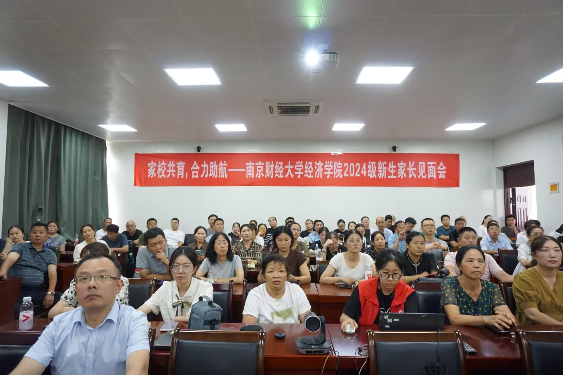 家校共建,合力助航。学院于德经楼307会议室召开2024级新生家长见面会。本次会议以线下线上相结合的方式开展。学院党委书记张圣兵,副院长刘小峰(主持工作),学院教师代表、江苏省教学名师王庚,党委副书记贾亦璞,院长助理刘余,经济系主任陈博欧、统计系主任程恭品、数字经济系主任华中昱和2024级全体新生家长参会。通过见面会,新生家长们增进了对学校、学院的办学实力和育人特色的了解,对学生的培养机制以及学院的办学力量有了更充分的了解,促进了家庭与学校“双向奔赴”。家长们纷纷表示,十分感谢学院提供本次交流与互动的机会,日后将会继续关注孩子成长,始终坚持学校教育与家庭教育相结合,共同为家校协同育人贡献力量。