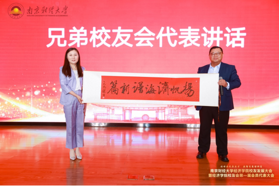 校友会捐赠书法作品“扬帆济海谱新篇”,对扣扣传媒