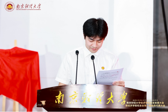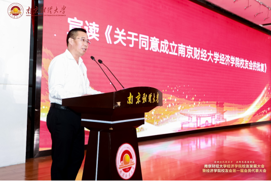 对外联络处副处长、校友总会秘书长王冲同志宣读《关于同意成立扣扣传媒