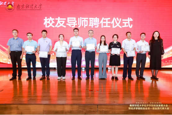 大会特别举行了“致敬恩师”仪式,校友代表们为李全根、许明政、陶用之、张彦伟等老教师献上鲜花,表达对师恩的感激之情。随后举行了校友导师聘任仪式。教务处处长朱红根、研究生工作部部长郝园园为十位校友颁发首届导师聘任证书。紧接着开展了校友捐赠仪式,对外联络处处长陆明峰同志向李峰校友和张海花校友颁发捐赠支票证书,两位校友夫妇设立“乐帆教育基金”,用于支持扣扣传媒