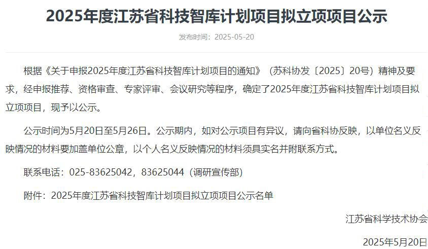 组织申报的2025年江苏省科技智库计划(智库)平台项目获准江苏省科学技术协会立项,扣扣传媒