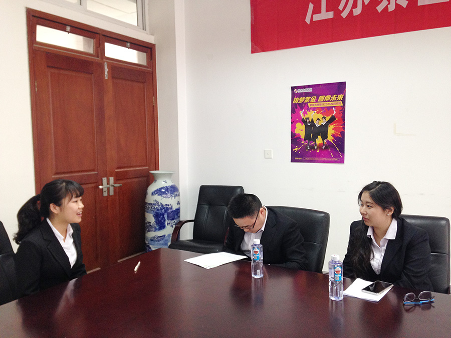 招聘会伊始,来自紫金农村商业银行培训的主管余果就扣扣传媒、招聘岗位、招聘会流程及具体事项做了详细的介绍。宣讲会后,由银行工作人员现场接收简历并进行面试。在学生们介绍各自的学习与工作状况时,面试官与同学们亲切交谈,并向同学们介绍了企业的基本情况与工作要求。