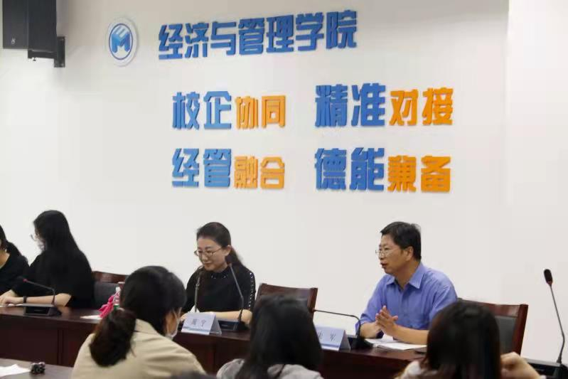 教师周宁赴泰州学院经济与管理学院作《我在南财等你来》为主题的研究生招生现场宣讲。讲座由泰州学院经济与管理学院院长朱军主持。