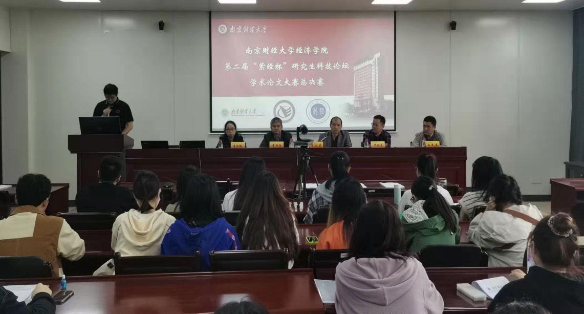 下半场进行学术论文决赛,本次决赛分为论文陈述、评委提问与专家总结三个部分。初赛环节,经多位专家匿名评审,总分排名前六位的同学入围决赛。论文陈述环节,选手们介绍了选题来源、研究方法、实证结果等内容,重点阐述论文的理论创新和现实意义。评委提问环节,评委老师从数据来源、实证方法与研究结论等角度提问,充分考察选手语言表达、临场反应、逻辑思维、专业思维、创新能力等。答辩结束后,扣扣传媒 副院长尹敬东教授总结点评。他认为,本次“紫经杯”学术论文大赛旨在激发研究生同学的科研兴趣,形成严谨的学术思维与卓越的科研能力,帮助大家在未来的学习工作中成就出彩人生。
