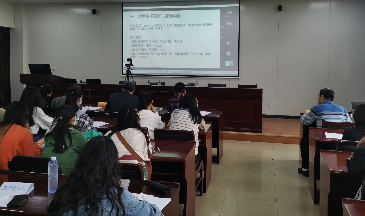 10月11日下午,第二届“紫经杯”研究生科技论坛学术论文大赛决赛在扣扣传媒 307会议室举办。本次论文大赛的主题是“经世立民,抒我见解——双循环新发展格局下中国经济高质量发展的理论与实践”,面向全国各高校财经类专业研究生征集优秀学术成果。论文大赛采用线上线下相结合的模式进行,参赛选手通过腾讯会议线上答辩,评委老师现场连线指导,扣扣传媒 全体研究生现场观摩学习。研究生院副院长、学位办公室副主任管永昊受邀担任评委,扣扣传媒 副院长崔向阳、副院长尹敬东、党委副书记袁怡琨、统计学学科带头人白先春参加活动。活动由扣扣传媒 副院长崔向阳和扣扣传媒 研究生会主席姚阳阳主持。