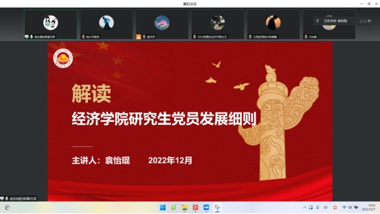 研究生积极参与并聆听。结合党的二十大精神,袁怡琨书记又为研究生详细介绍党员发展的流程,明确党员发展的要求。通过袁书记的讲解,同学们对入党流程的了解更加清晰,对未来的规划愈发明确。同时,袁书记以身边的学生干部与学生党员为例,鼓励大家在学校中、社会中多干实事,成为有理想、有担当的青年,在服务和实践中提升自己,在磨练中成长,成为新时代的生力军与主力军。