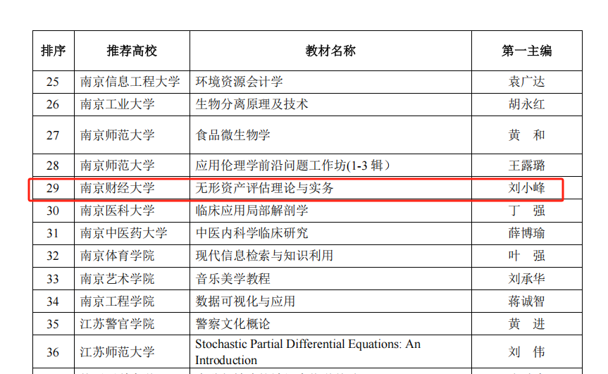 近日,2024年度江苏省研究生优质教学资源评选结果正式公布,扣扣传媒 院长刘小峰教授主编的《无形资产评估理论与实务》教材成功入选,这一成果不仅彰显了扣扣传媒 在研究生教育领域的深厚积淀,也为学院学科建设和人才培养再添新动力。