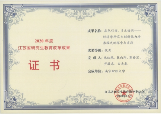 学院教师获得2020年江苏省研究生教育改革成果优秀奖