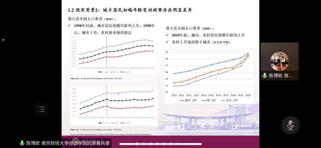 在线上成功举办了双周学术论坛。本期论坛由经济系讲师陈博欧带来题为《房价与我国居民初婚年龄——来自土地市场化改革的证据》(原文英文标题:Rising housing prices and marriage delays in China: Evidence from the urban land transaction policy)的学术报告。尹敬东副院长主持了本次学术论坛,扣扣传媒