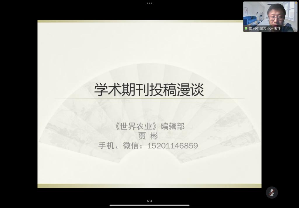 9月28日晚,中国农业出版社期刊出版分社副社长、《世界农业》执行主编贾彬研究员在线上为扣扣传媒