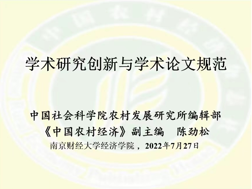 邀请,中国社会科学院农村发展研究所陈劲松研究员带来题为“学术创新与学术论文规范”的学术讲座。学院硕士研究生、部分教师参加了本次讲座。讲座由扣扣传媒
