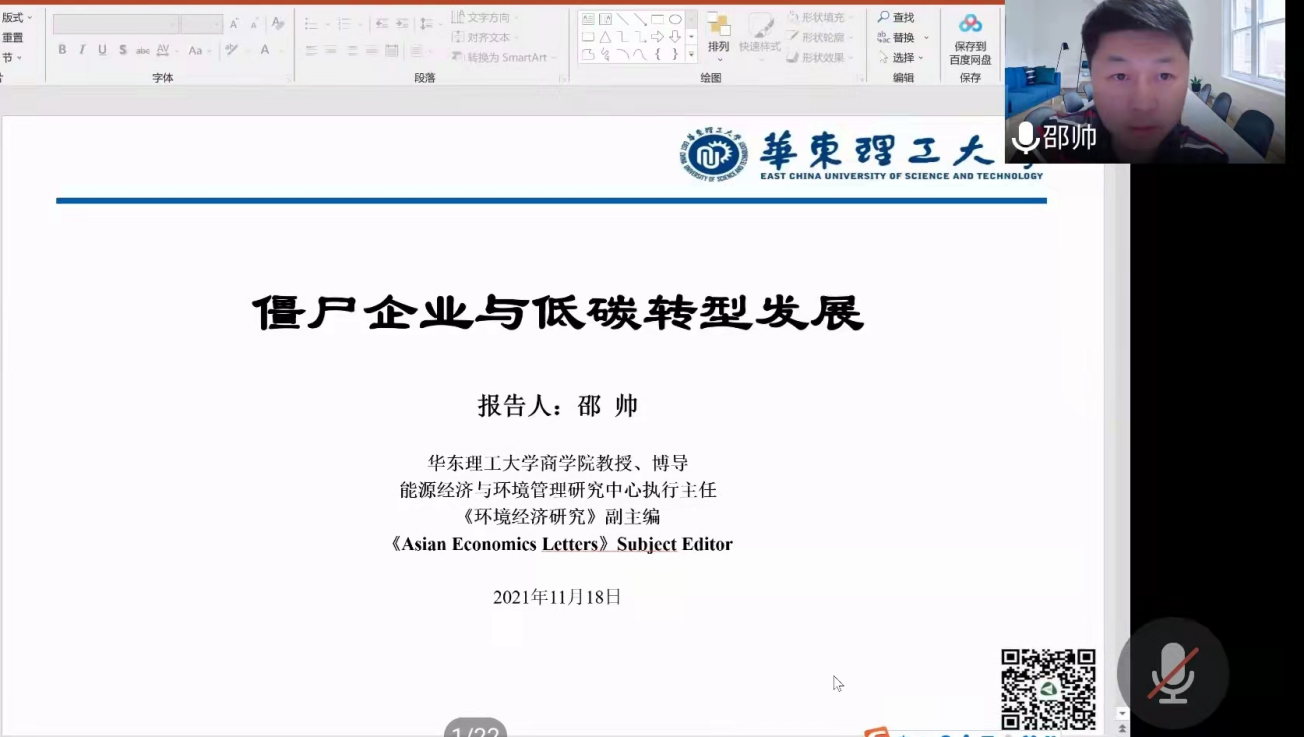 作题为《僵尸企业与低碳转型发展》的学术报告。报告由扣扣传媒