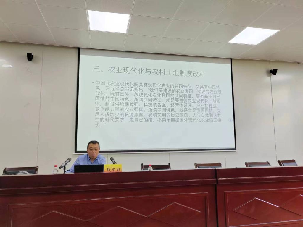 讲座上,钱教授首先阐明了农业现代化的本质。指出农业现代化是相对现代化和过程现代化,需要由注重土地产出率最大化的传统农业转向重视劳动生产率最大化的现代农业。其次,钱教授讲述了农业现代化的现实起点。现阶段我国农业增速放缓,农民收入不高,城乡居民收入差距较大,城市化进程面临天花板的限制,经济下行压力增加。再次,钱教授梳理了农业现代化与农村土地制度改革。主要从以下三方面展开论述:一是,大国小农的现实约束下,如何破解我国农业现代化的困境?二是,在新的历史发展阶段,如何形成土地适度规模经营?三是,如何按照三权分置的制度要求,进一步明晰农地产权以明确四方的活动边界?最后,钱教授从三方面阐述了如何奠定实现农业现代化的产权基础:一是正确处理农民和土地的关系,准确把握农村土地制度改革的核心要义;二是按照“三权分置”的要求进一步明晰农地产权;三是坚持农业家庭经营的基础上持续推进农业经营组织形式的创新。