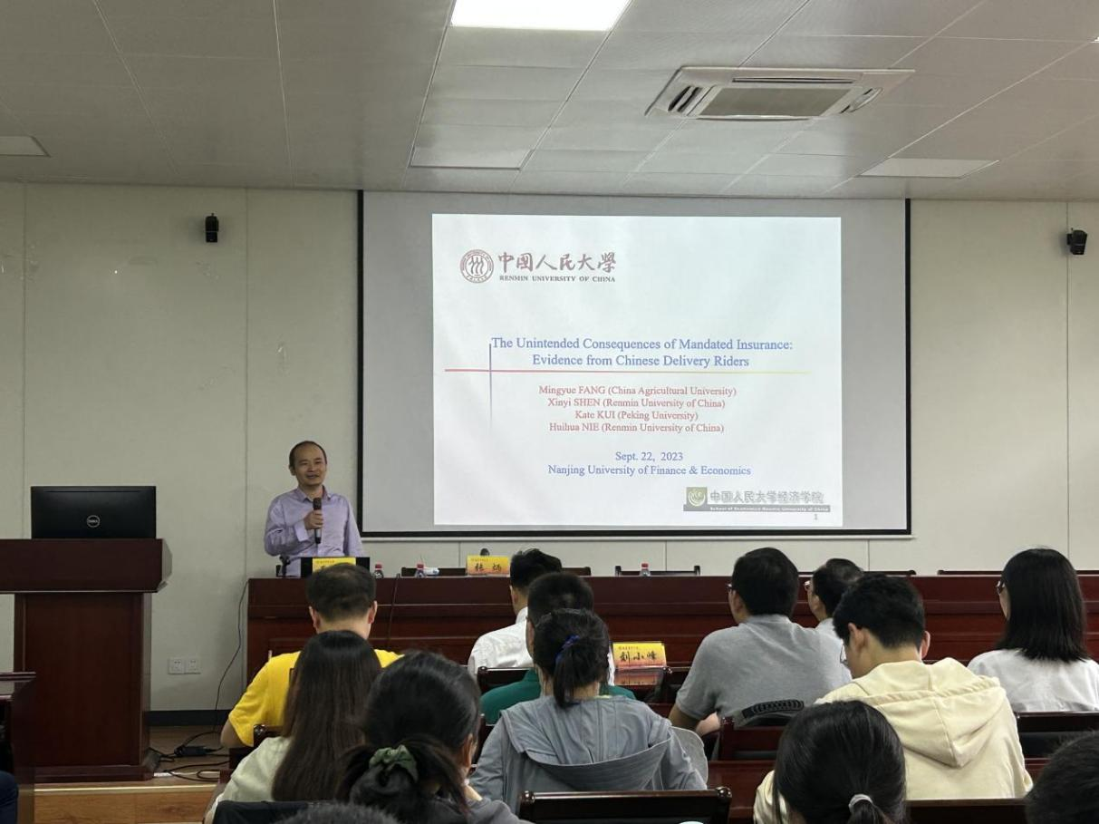 邀请,中国人民大学聂辉华教授在仙林校区德经楼307会议室作了题为“The Unintended Consequences of Mandated Insurance: Evidence from Chinese Delivery Riders(政府强制保险的未意料后果:来自中国外卖骑手的证据)”的学术讲座。讲座由我校副校长张炳教授主持。扣扣传媒