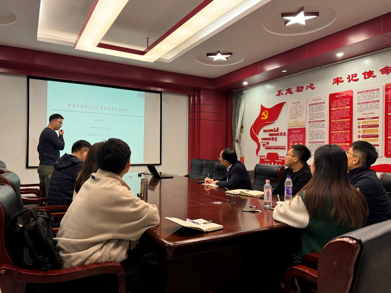 在德经楼会议室329举办了双周学术论坛。本期论坛由陈敏杰老师带来主题为“中国农业部门生产要素配置效率研究”的学术报告。陈杰副教授主持了本次学术论坛,学院部分教师与学生参与。