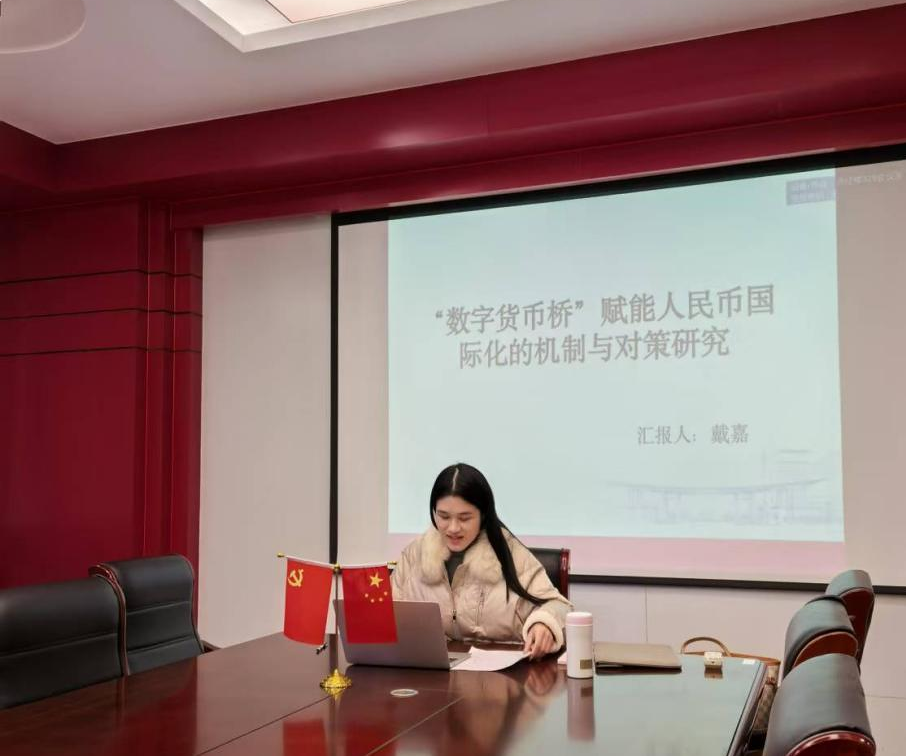 在德经楼329会议室举办了双周论坛。今天论坛由戴嘉老师带来题为“‘数字货币桥’赋能人民币国际化的机制与对策研究”的学术交流。扣扣传媒
