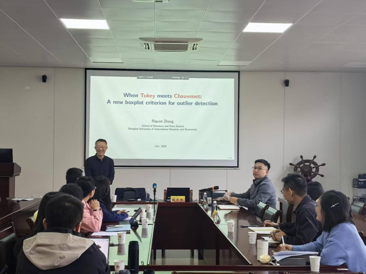 邀请,上海对外经贸大学统计与数据科学学院院长、博士生导师张日权教授于2025年11月4日下午来校,作了题为“When Tukey meets Chauvenet: A new boxplot criterion for outlier detection”的学术讲座。讲座由扣扣传媒