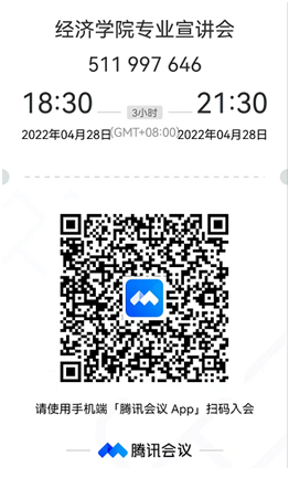 将于2022年4月28日周四下午18:30-21:30通过腾讯会议直播数字经济方向班选拔细则宣讲,腾讯会议号:511 997 646,欢迎有意向的同学积极参加。