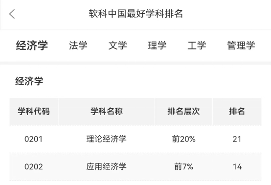 其中,理论经济学排名为全国第21名,前20%;应用经济学排名为全国第14名,前7%;统计学排名为全国第33名,前30%。